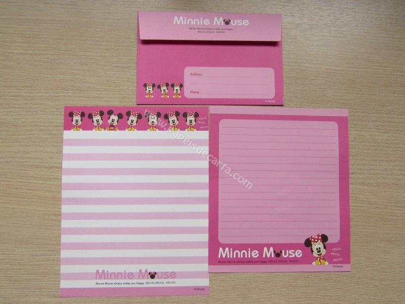 Conjunto importado, de papel de carta da Minnie, com 2 folhas diferentes e 1 envelope, da Disney. Fabricante: Sun-Star