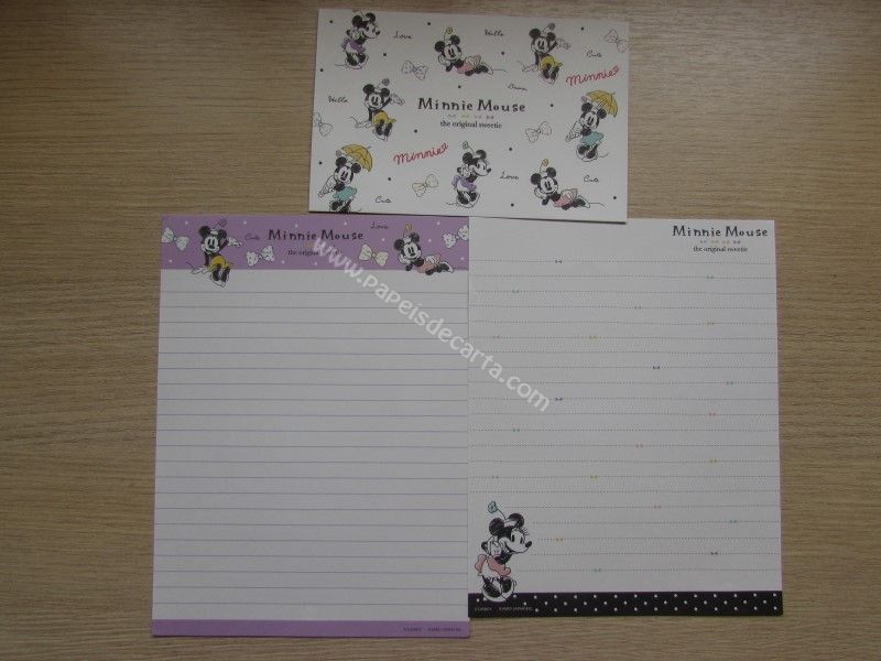 Conjunto importado, de papel de carta da Minnie, com 2 folhas diferentes e 1 envelope, da Disney.