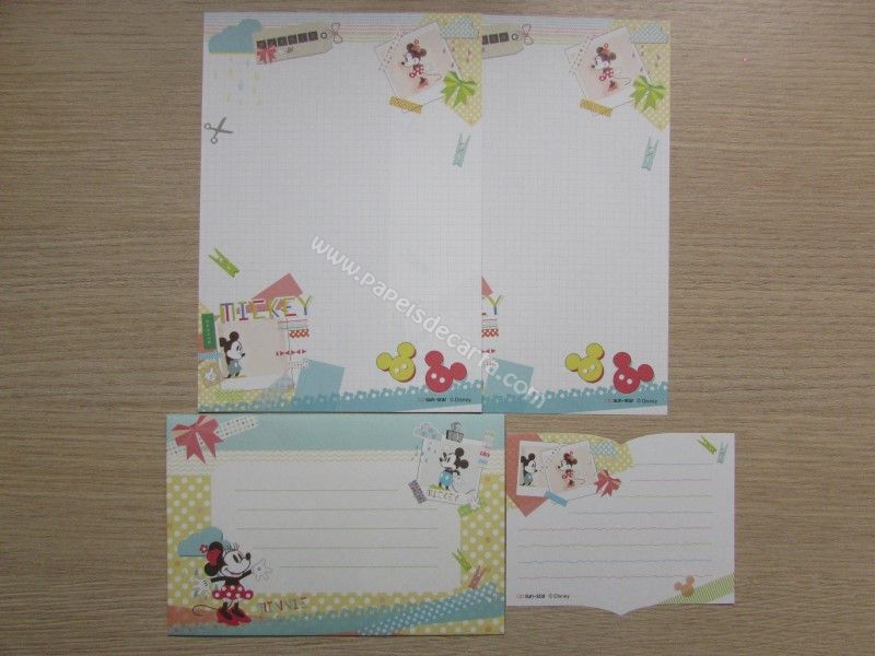 Conjunto importado, de papel de carta do Mickey e da Minnie, com 2 folhas iguais, 1 envelope e 1 notinha, da Disney.