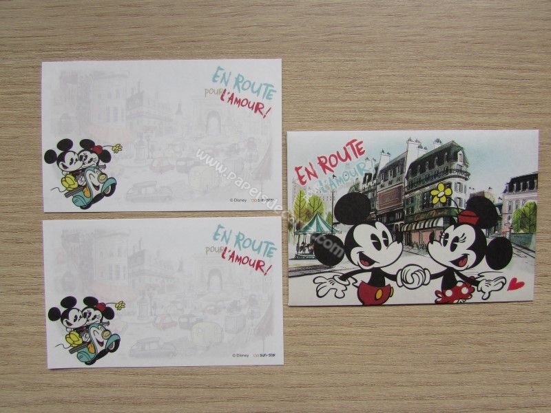 Mini Conjunto importado, de papel de carta do Mickey e da Minnie, com 2 folhas iguais pequenas e 1 mini envelope, da Disney.