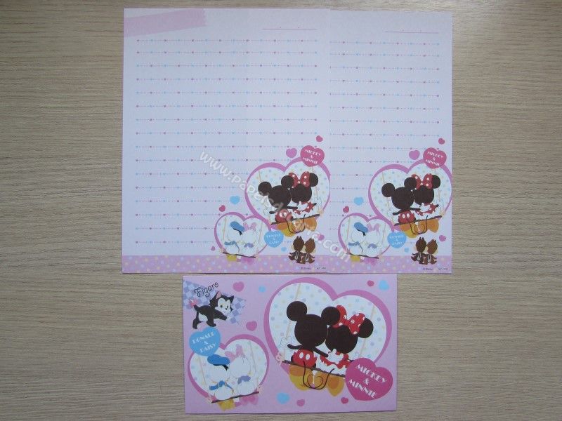 Conjunto importado, de papel de carta do Mickey e da Minnie, com 2 folhas iguais, 1 envelope, da Disney.