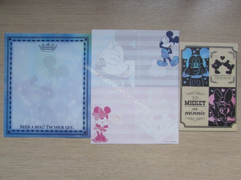 Conjunto importado, de papel de carta do Mickey e da Minnie, com 2 folhas diferentes, 1 envelope, da Disney.
