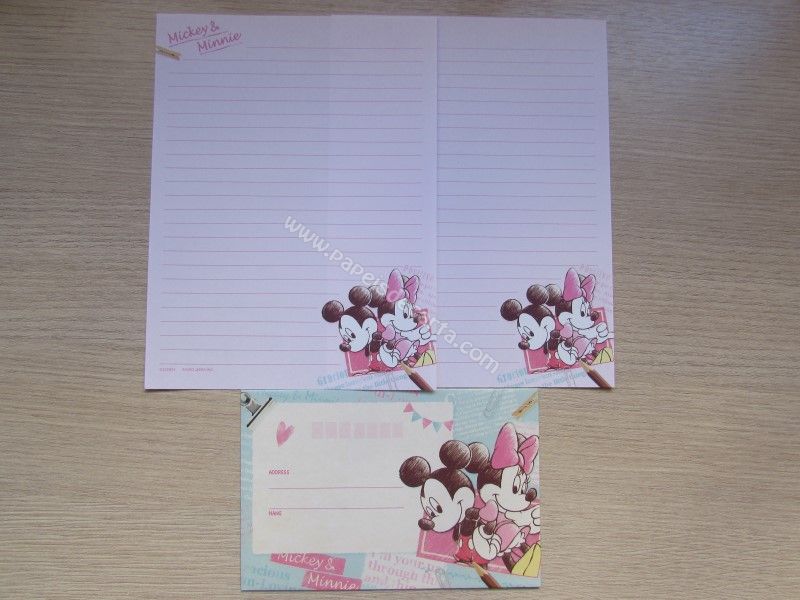Conjunto importado, de papel de carta do Mickey e da Minnie, com 2 folhas iguais, 1 envelope, da Disney.