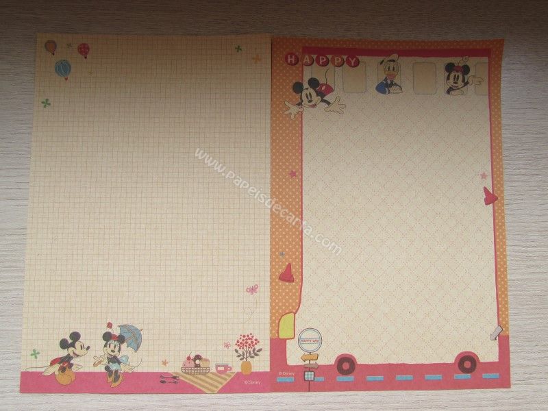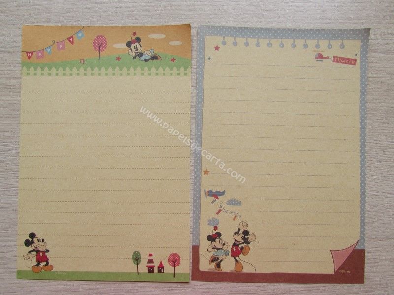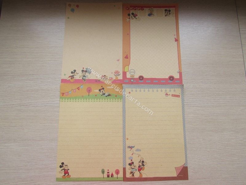 Lote importado, de papel de carta com 4 folhas diferentes do Mickey & Minnie. Tamanho médio.