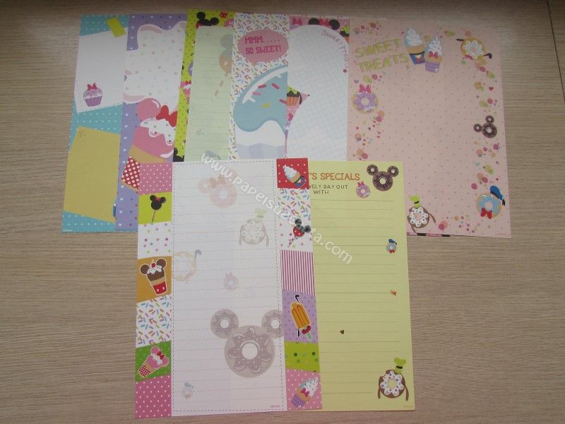 Lote importado, de papel de carta com 8 folhas diferentes do Mickey & Minnie. Tamanho médio.
