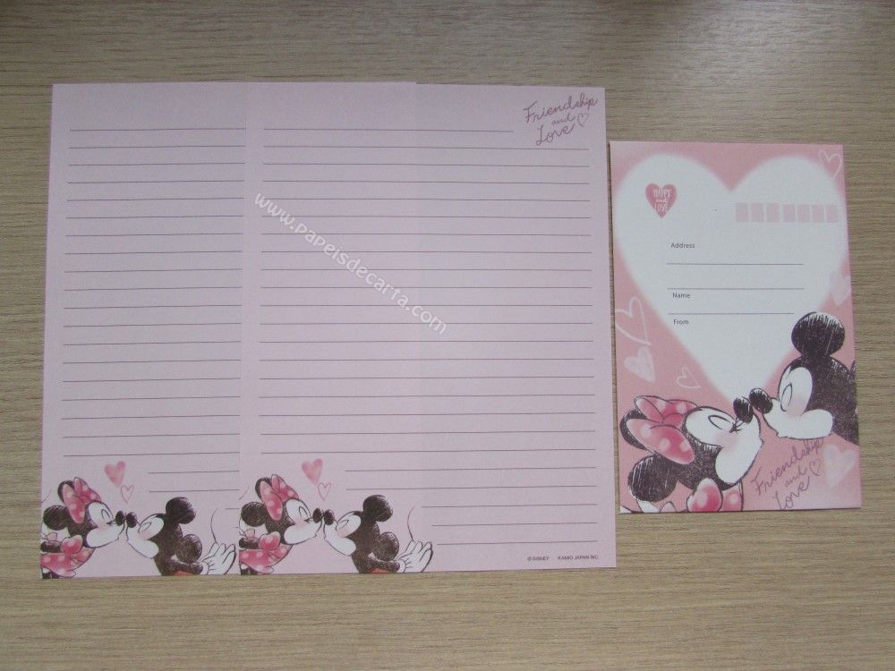 Conjunto importado, de papel de carta do Mickey e da Minnie, com 2 folhas iguais, 1 envelope, da Disney.