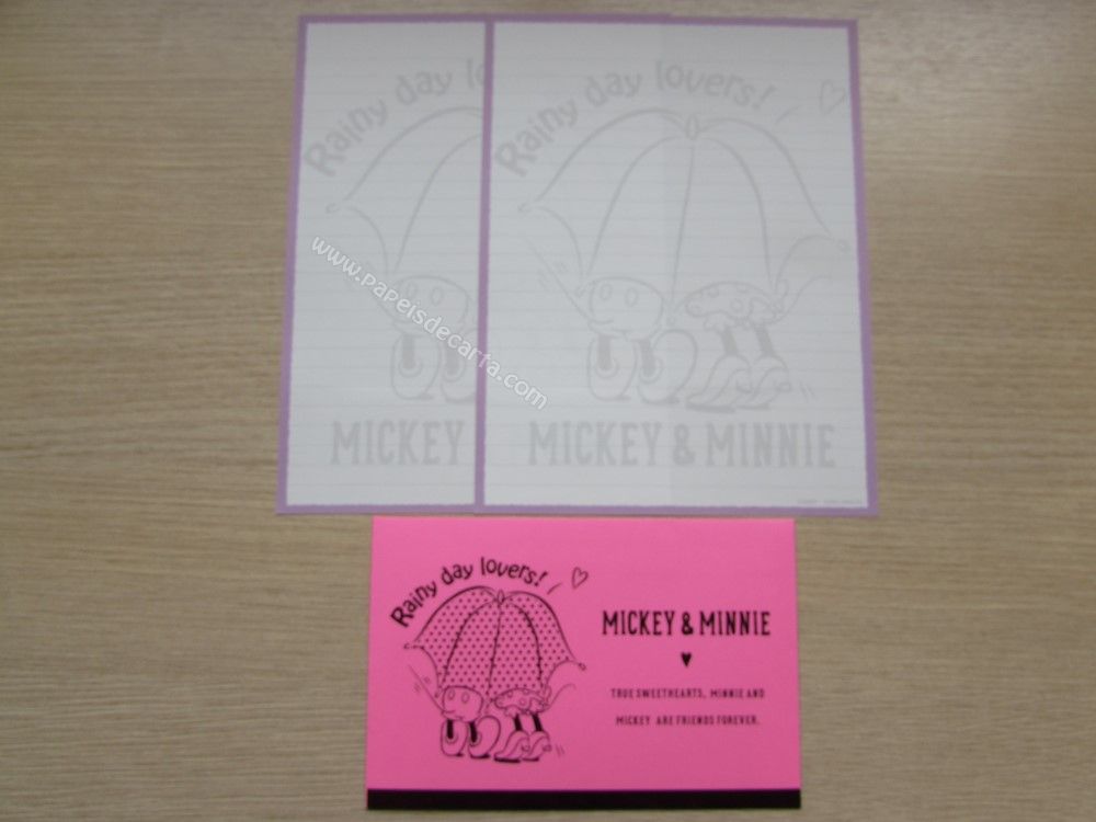 Conjunto importado, de papel de carta do Mickey e da Minnie, com 2 folhas iguais, 1 envelope, da Disney.