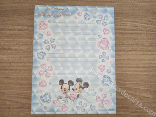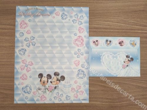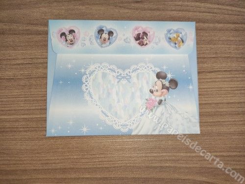 Conjunto de papel de carta antigo do Mickey e da Minnie, com 1 folha e 1 envelope, da Disney.