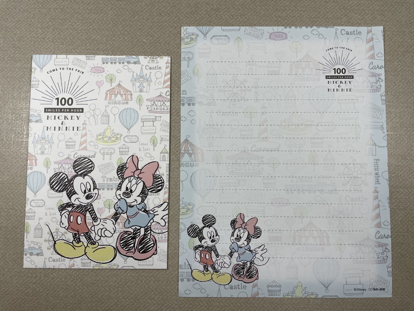 Conjunto de papel de carta importado do Mickey e da Minnie, com 1 folha e 1 envelope, da Disney.