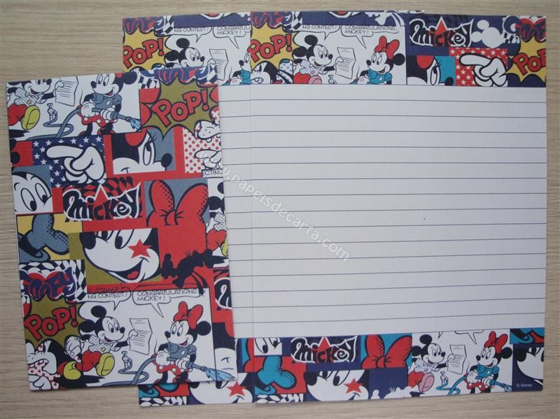 Conjunto com 2 folhas e 1 envelope do Mickey e da Minnie 03