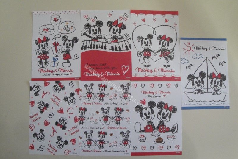 Conjunto importado, de papel de carta com 7 notinhas diferentes do Mickey e Minnie.