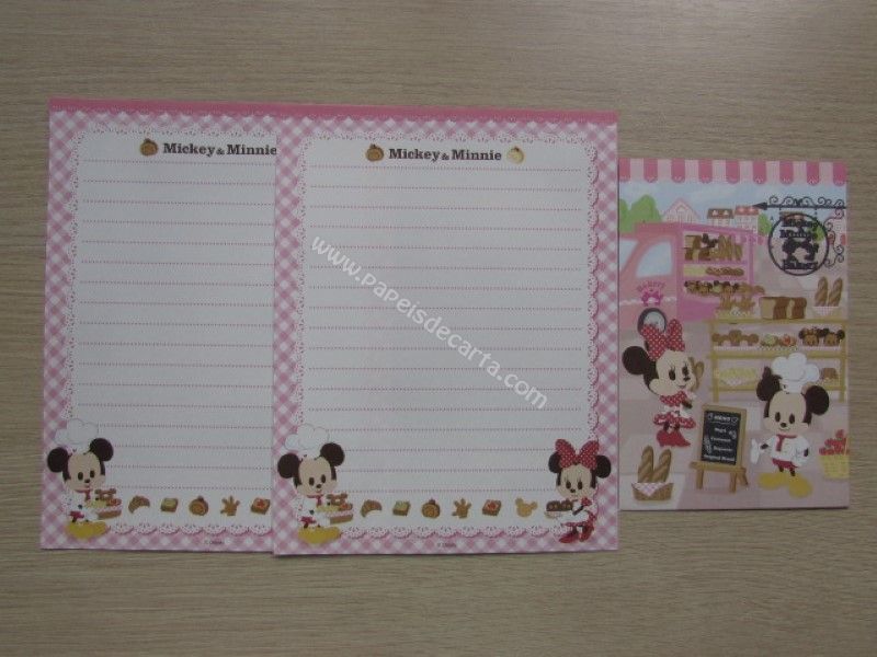 Conjunto importado, de papel de carta do Mickey e da Minnie, com 2 folhas iguais e 1 envelope, da Disney. Fabricante: Sun-Star.