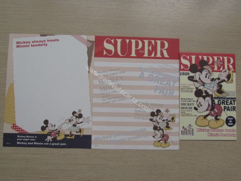 Conjunto importado, de papel de carta do Mickey e da Minnie, com 2 folhas diferentes e 1 envelope, da Disney.