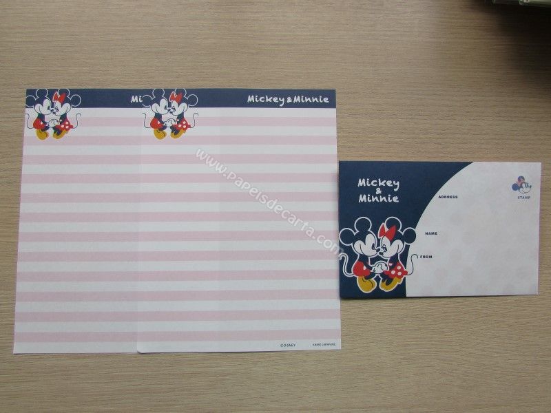 Conjunto importado, de papel de carta do Mickey e da Minnie, com 2 folhas iguais e 1 envelope, da Disney. Fabricante: Kamio.