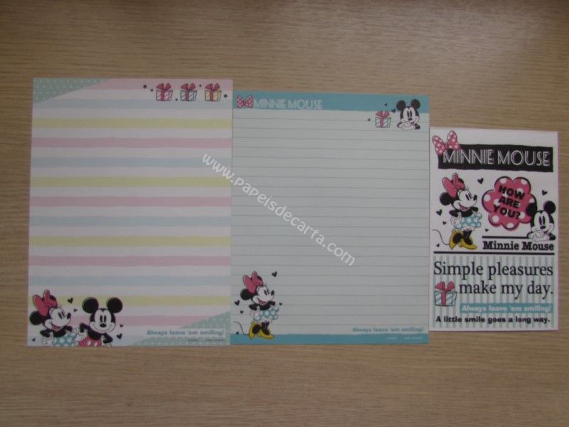 Conjunto importado, de papel de carta do Mickey e da Minnie, com 2 folhas diferentes e 1 envelope, da Disney.