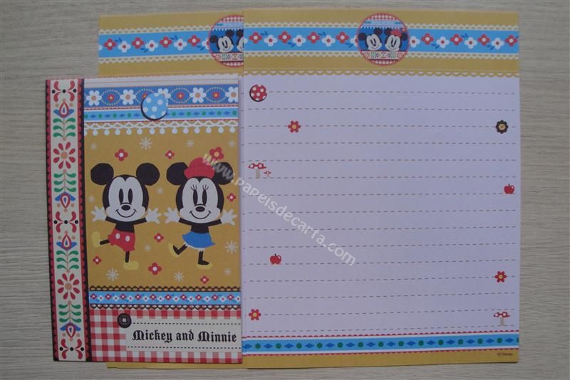 Conjunto com 2 folhas e 1 envelope do Mickey e da Minnie 07