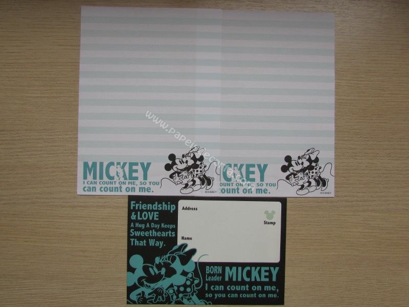 Conjunto importado, de papel de carta do Mickey e da Minnie, com 2 folhas iguais e 1 envelope, da Disney.