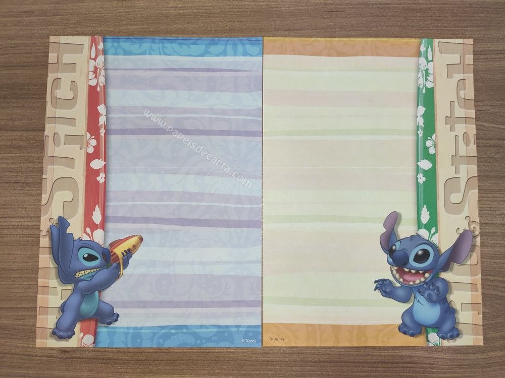 Conjunto importado, de papel de carta com 2 folhas diferentes do Stitch.