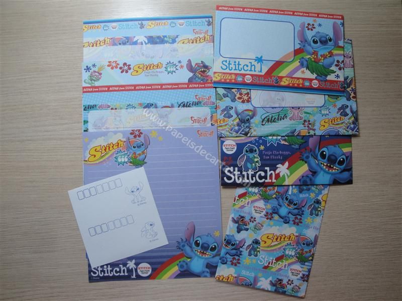Super Conjunto importado, de papel de carta com 6 folhas diferentes e 4 envelopes diferentes do Stitch.