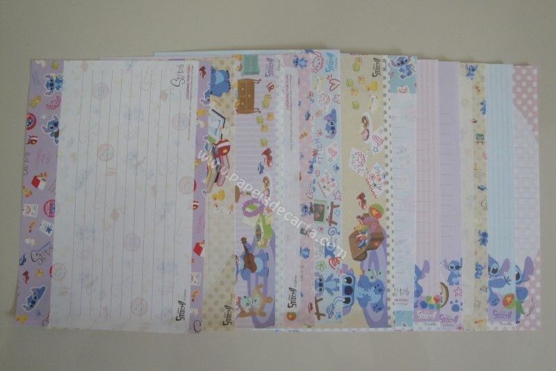 Conjunto importado, de papel de carta com 12 folhas diferentes do Stitch.