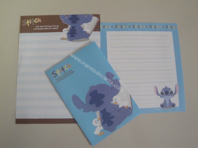 Conjunto de papel de carta importado, com 2 folhas diferentes e 1 envelope do Stitch, da Disney.
