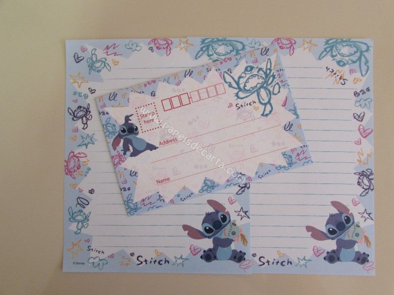 Conjunto com 2 folhas e 1 envelope do Stitch 37