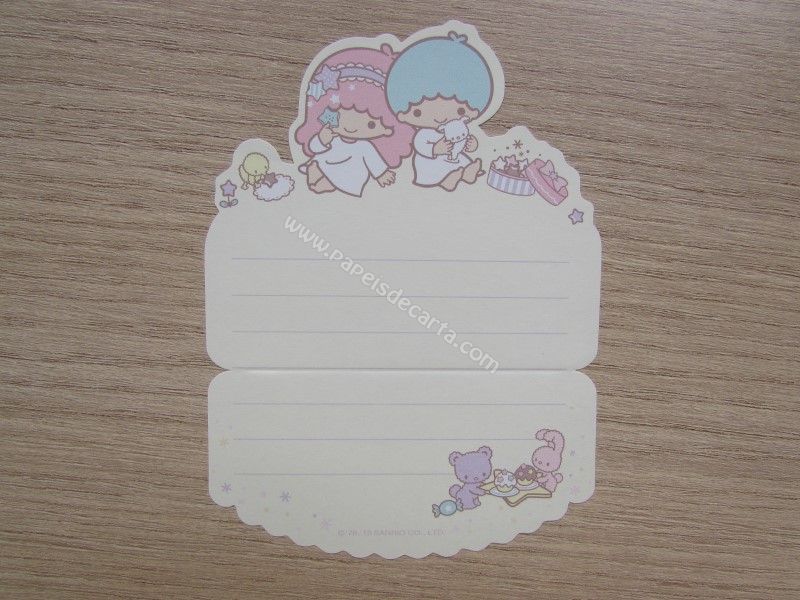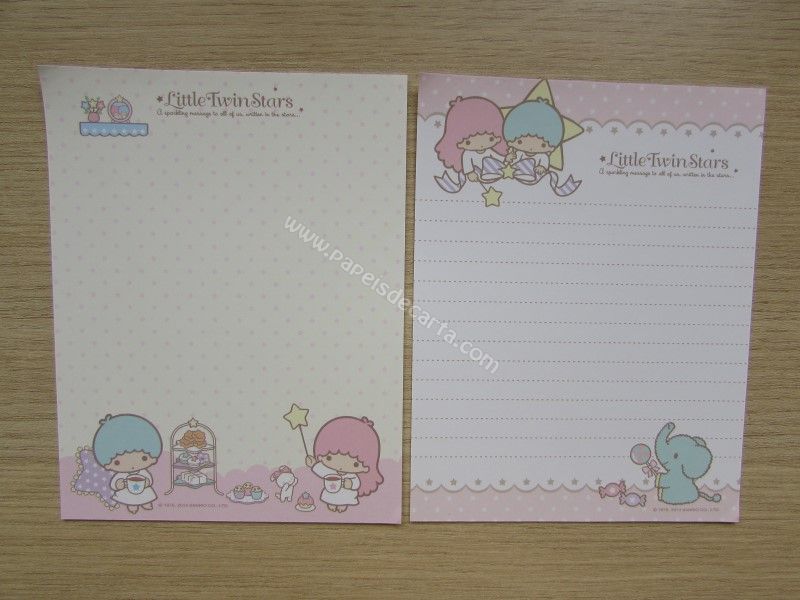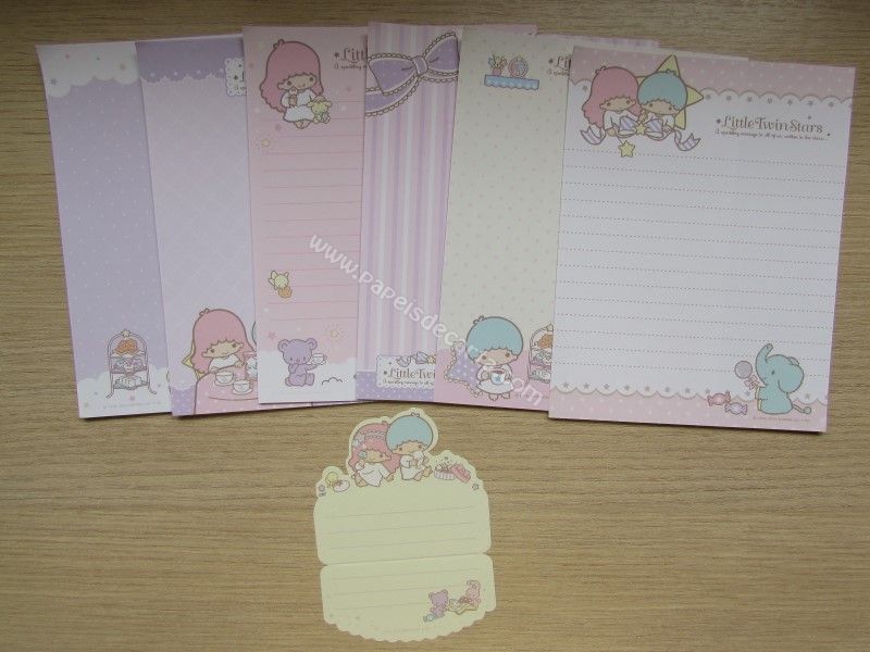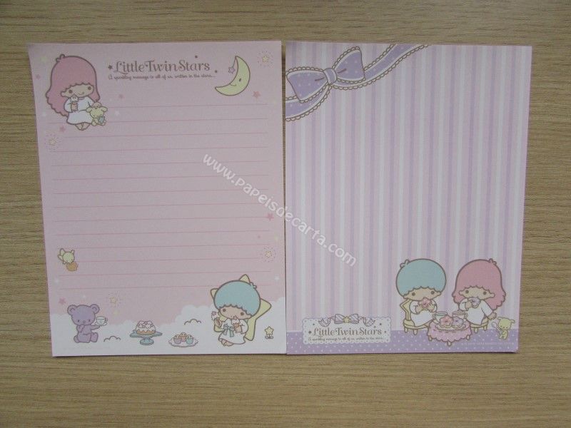 Conjunto importado, de papel de carta com 7 papéis diferentes dos Little Twin Stars. Tamanho um pouco menor que o médio.