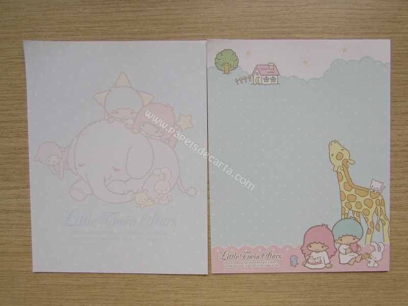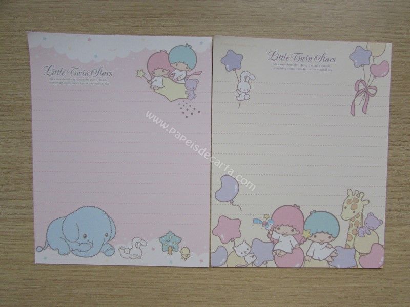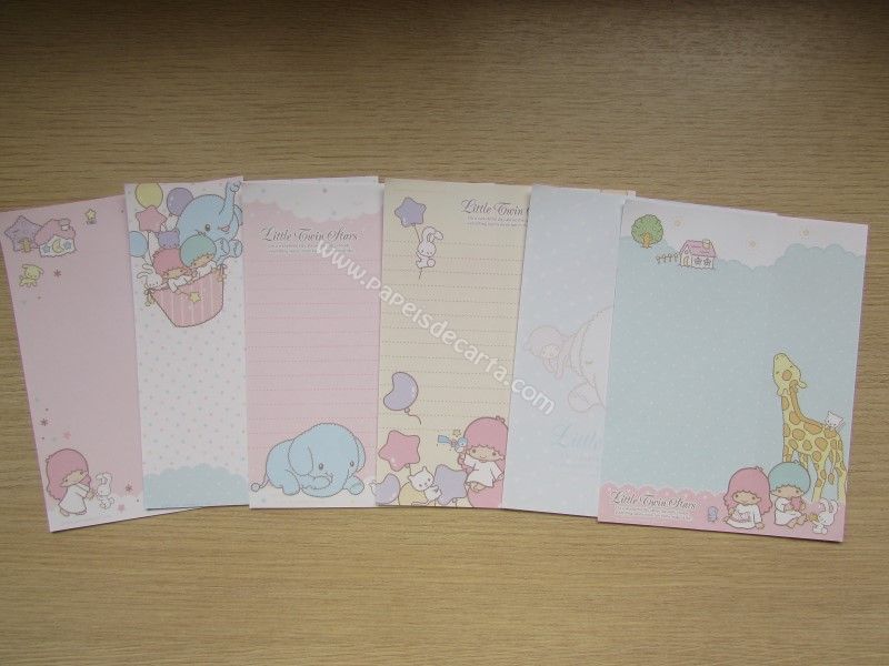 Conjunto importado, de papel de carta com 6 papéis diferentes dos Little Twin Stars. Tamanho um pouco menor que o médio.
