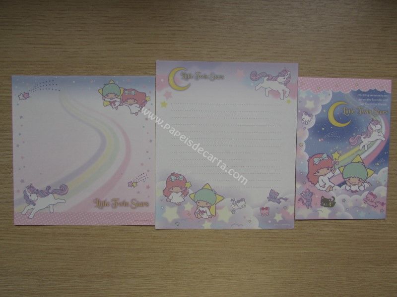 Conjunto importado de papel de carta dos Little Twin Stars, com 2 folhas diferentes e 1 envelope. Fabricante: Sanrio.