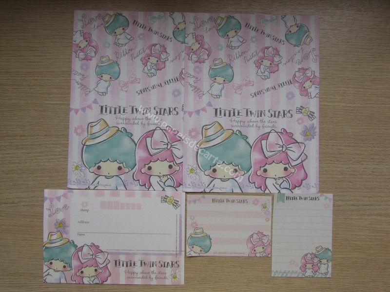 Conjunto importado de papel de carta dos Little Twin Stars, com 2 folhas iguais e 1 envelope. Fabricante: Sanrio.