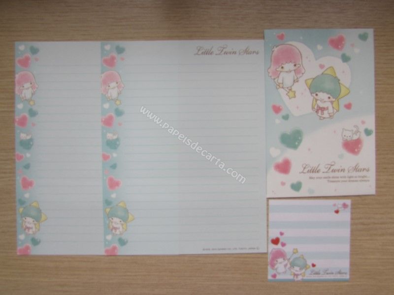 Conjunto importado de papel de carta dos Little Twin Stars, com 2 folhas iguais e 1 envelope. Fabricante: Sanrio.
