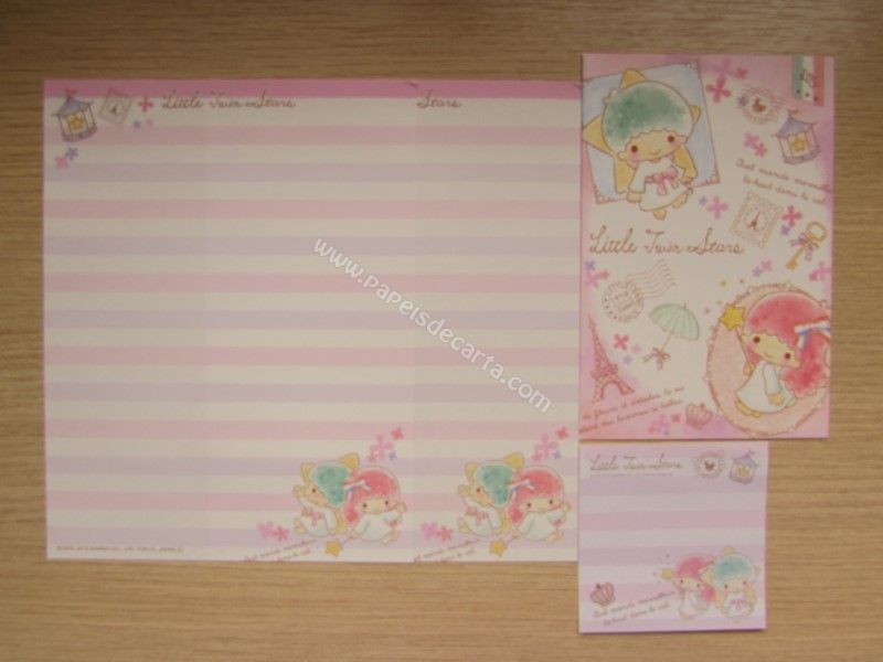 Conjunto importado de papel de carta dos Little Twin Stars, com 2 folhas iguais e 1 envelope. Fabricante: Sanrio.
