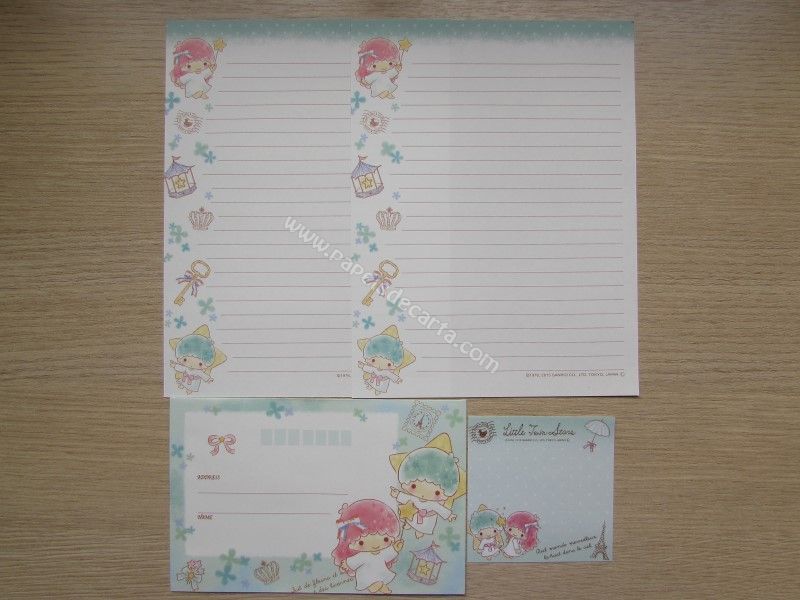 Conjunto importado de papel de carta dos Little Twin Stars, com 2 folhas iguais e 1 envelope. Fabricante: Sanrio.