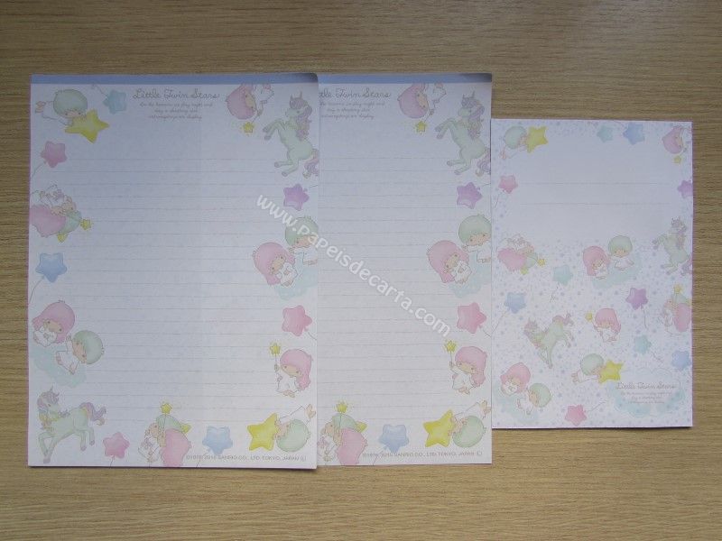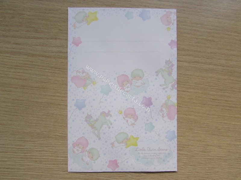 Conjunto importado de papel de carta dos Little Twin Stars, com 2 folhas iguais e 1 envelope. Fabricante: Sanrio.