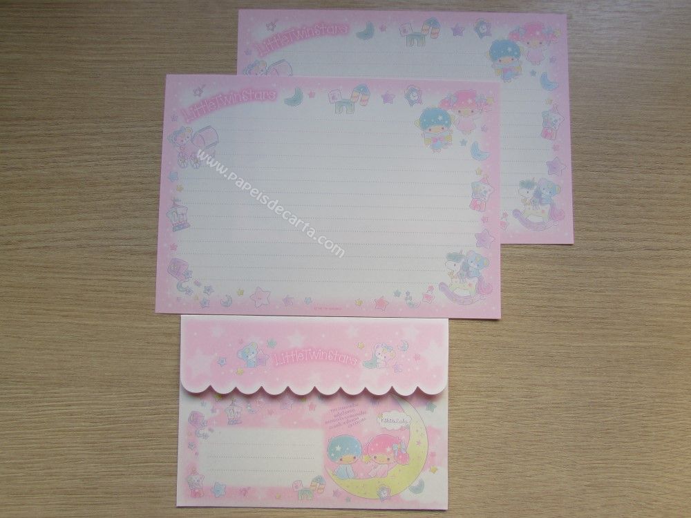 Conjunto importado de papel de carta dos Little Twin Stars, com 2 folhas iguais e 1 envelope. Tamanho médio. Fabricante: Sanrio.
