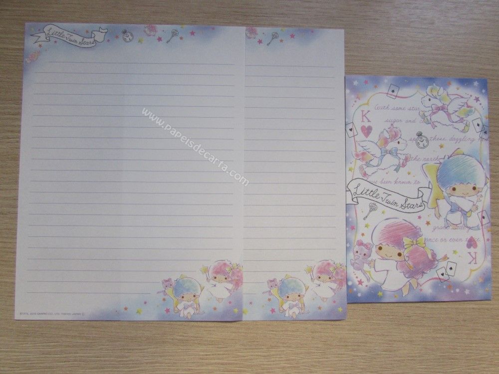 Conjunto importado de papel de carta dos Little Twin Stars, com 2 folhas iguais e 1 envelope. Tamanho médio. Fabricante: Sanrio.