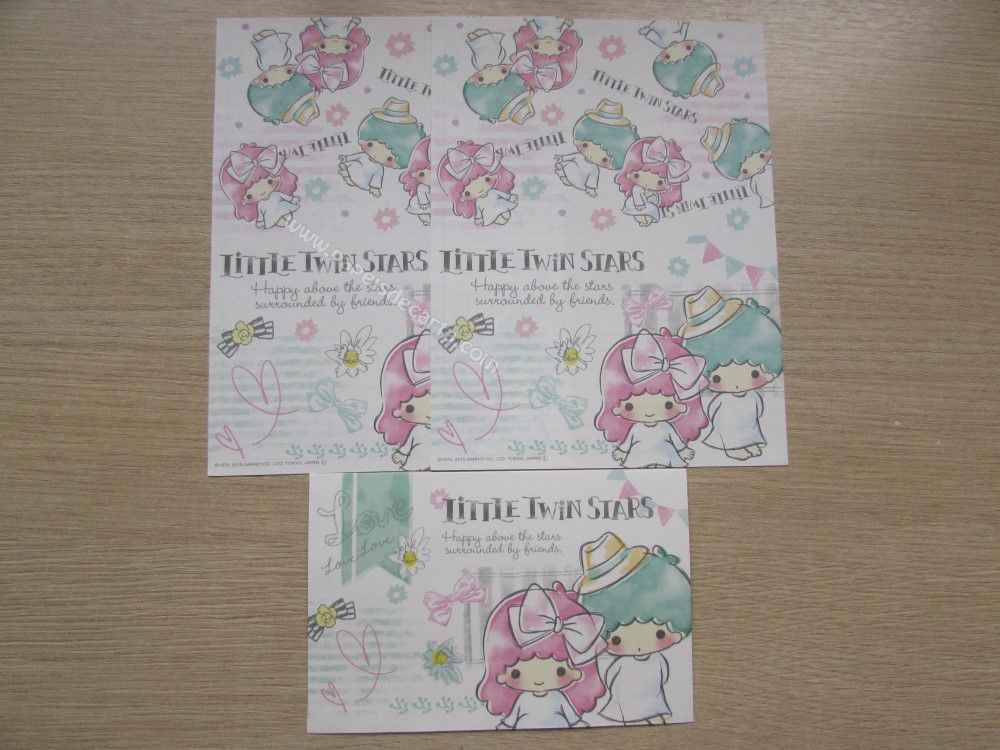 Conjunto importado de papel de carta dos Little Twin Stars, com 2 folhas iguais e 1 envelope. Tamanho médio. Fabricante: Sanrio.