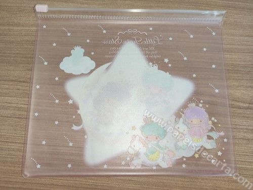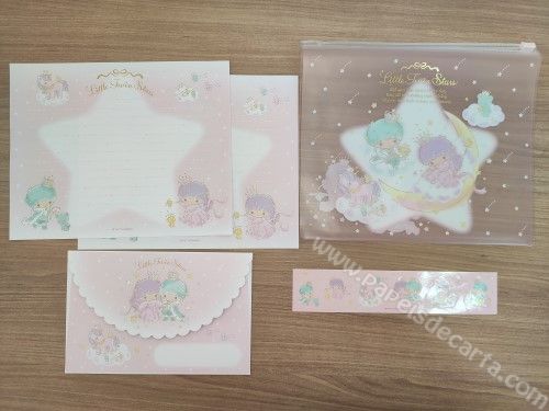 Conjunto de papel de carta com 2 folhas e 1 envelope + capinha plástica, + adesivos dos Little Twin Stars.