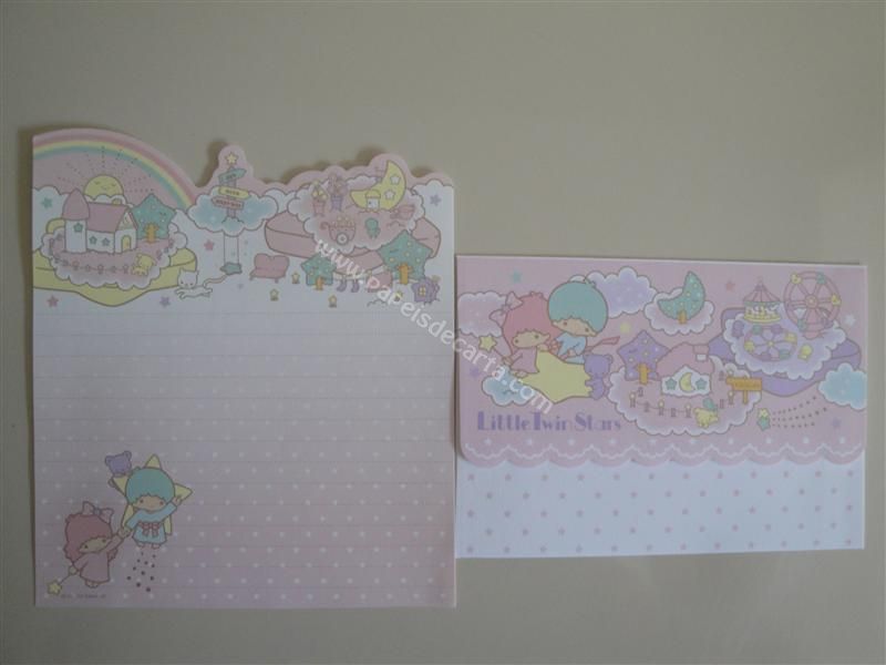 Conjunto importado, de papel de carta com 1 folha e 1 envelope dos Little Twin Stars.