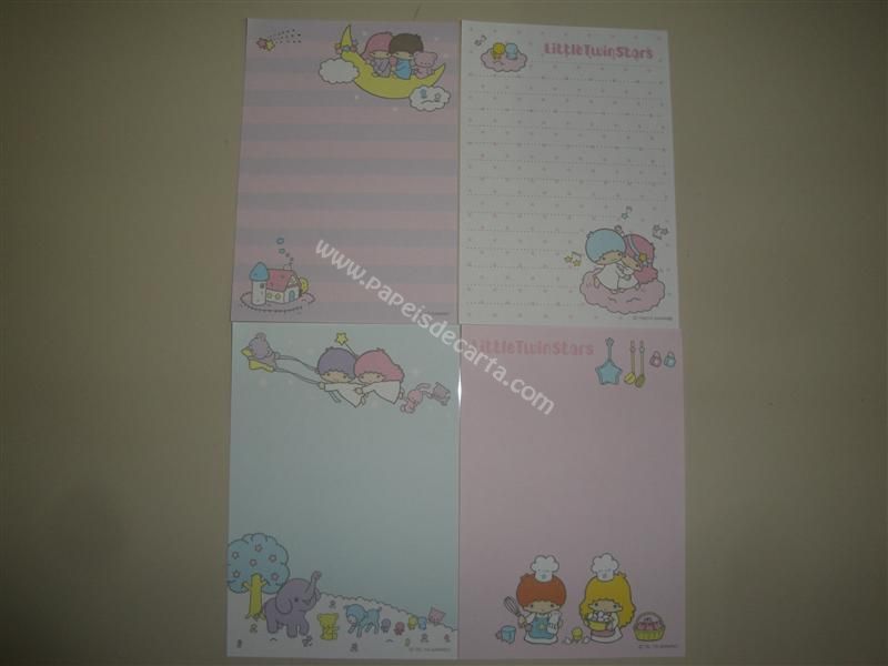 Conjunto importado, de papel de carta com 4 notinhas diferentes dos Little Twin Stars.