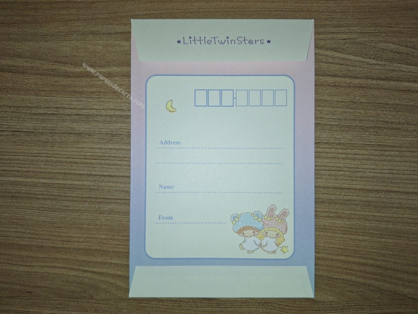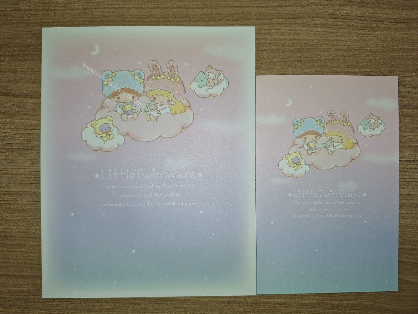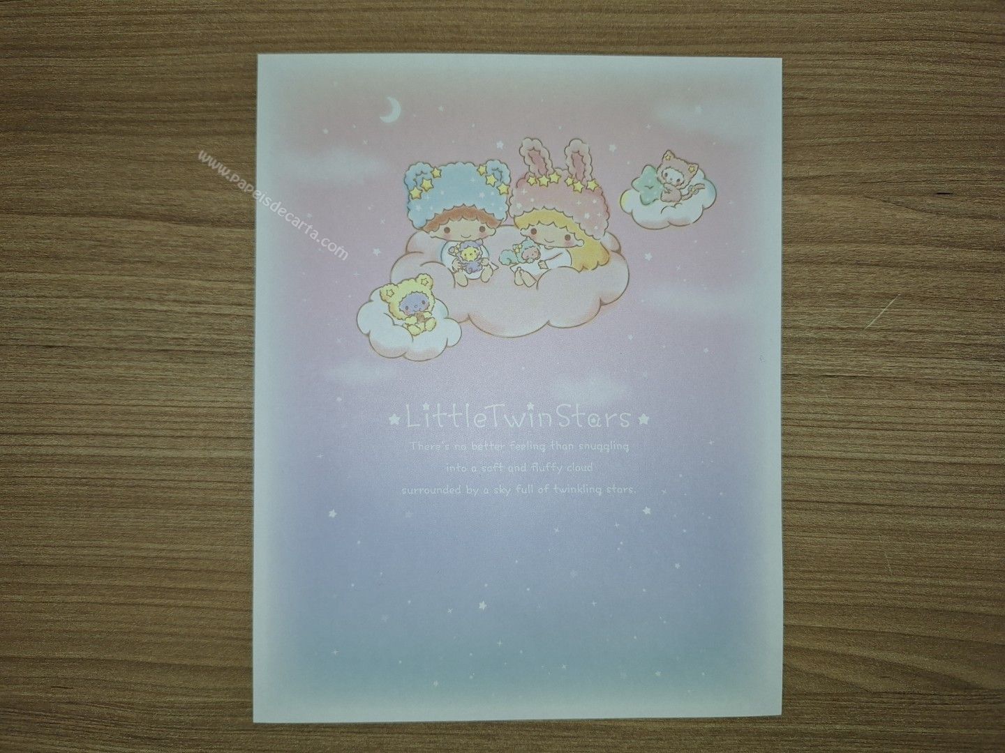 Conjunto importado de papel de carta dos Little Twin Stars, com 1 folha e 1 envelope. Fabricante: Sanrio.