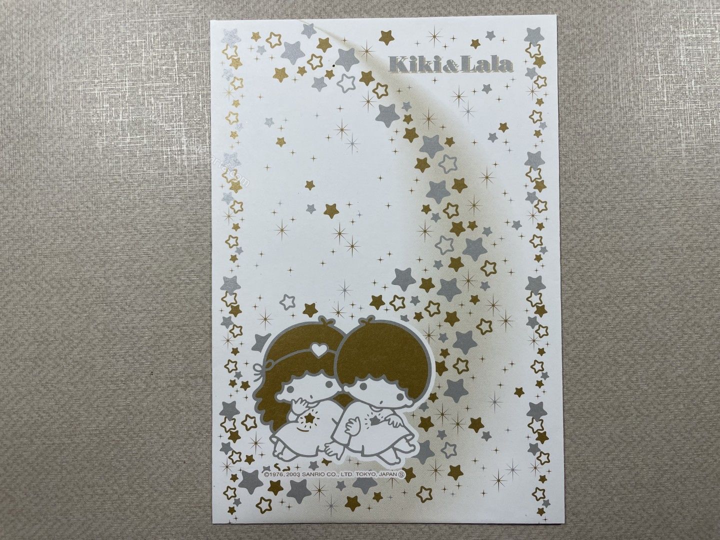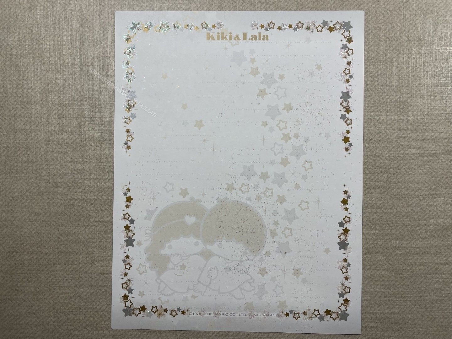 Conjunto importado de papel de carta dos Little Twin Stars, com 1 folha e 1 envelope. Tamanho médio. O Papel possui glitter. Fabricante: Sanrio.