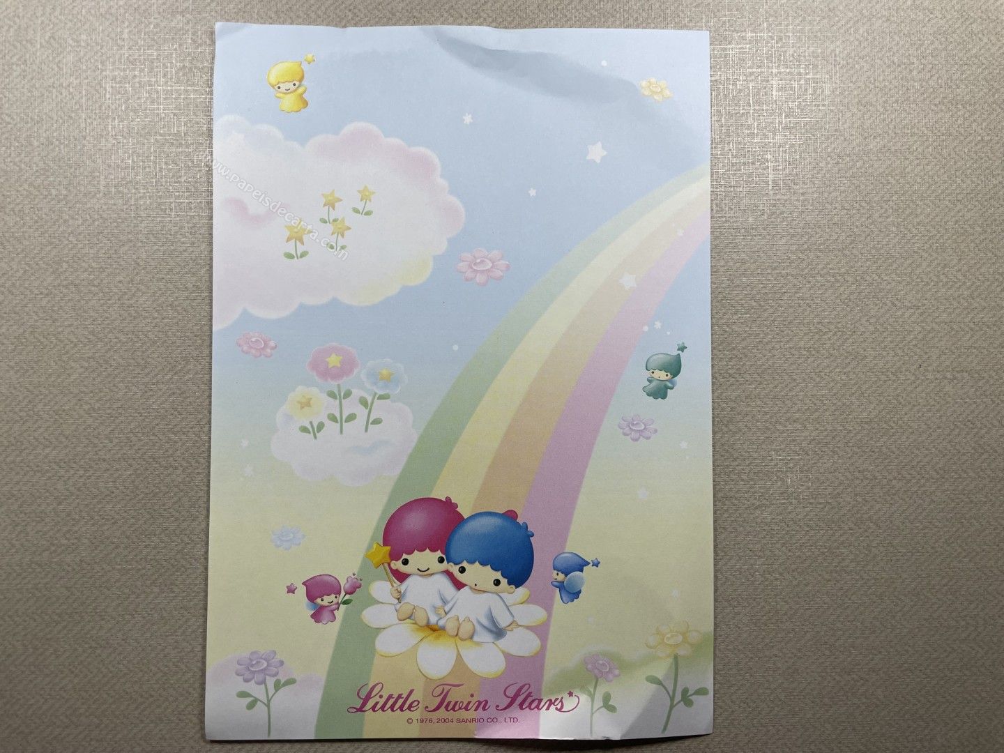 Papel de carta importado, dos Little Twin Stars. Tamanho médio. ** O PAPEL ESTÁ MEIO AMASSADINHO.**