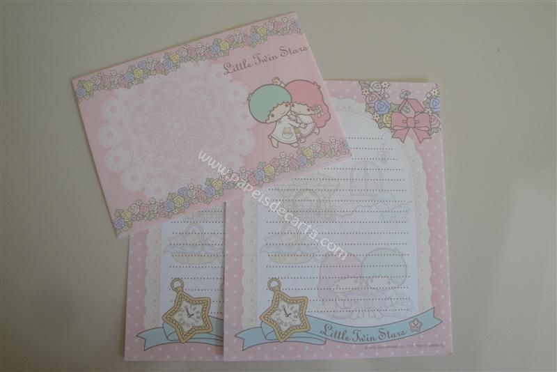 Conjunto importado, de papel de carta com 2 folhas iguais e 1 envelope dos Little Twin Stars.