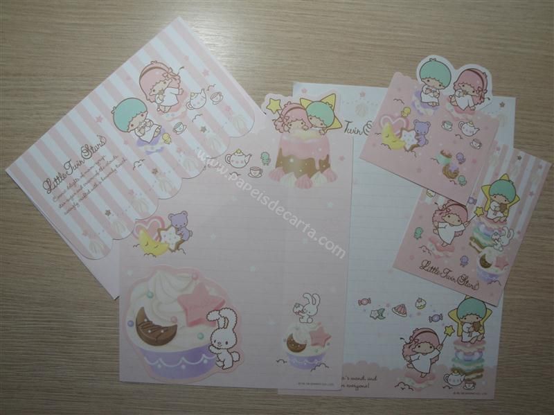 Conjunto importado, de papel de carta com 2 folhas diferentes, 3 notinhas diferentes e 1 envelope dos Little Twin Stars.