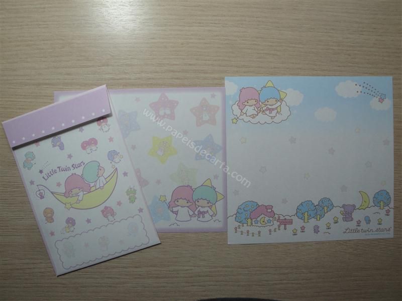 Conjunto importado, de papel de carta com 2 folhas diferentes e 1 envelope dos Little Twin Stars.