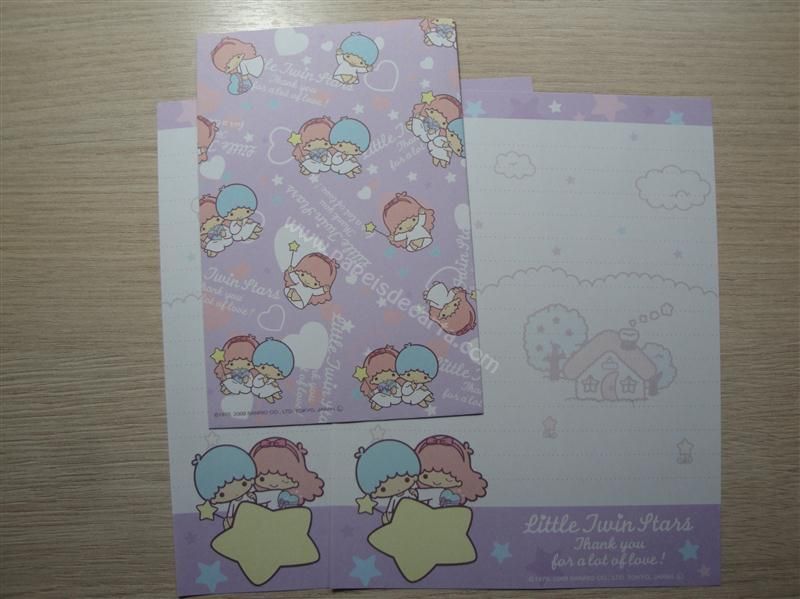 Conjunto importado, de papel de carta com 2 folhas iguais e 1 envelope dos Little Twin Stars.