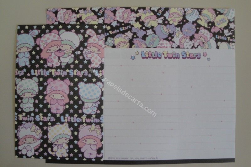 Conjunto importado, de papel de carta com 2 folhas iguais e 1 envelope dos Little Twin Stars.