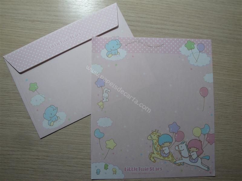 Conjunto importado, de papel de carta com 1 folha e 1 envelope dos Little Twin Stars.