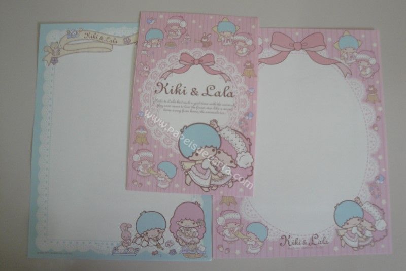 Conjunto importado, de papel de carta com 2 folhas diferentes e 1 envelope dos Little Twin Stars.